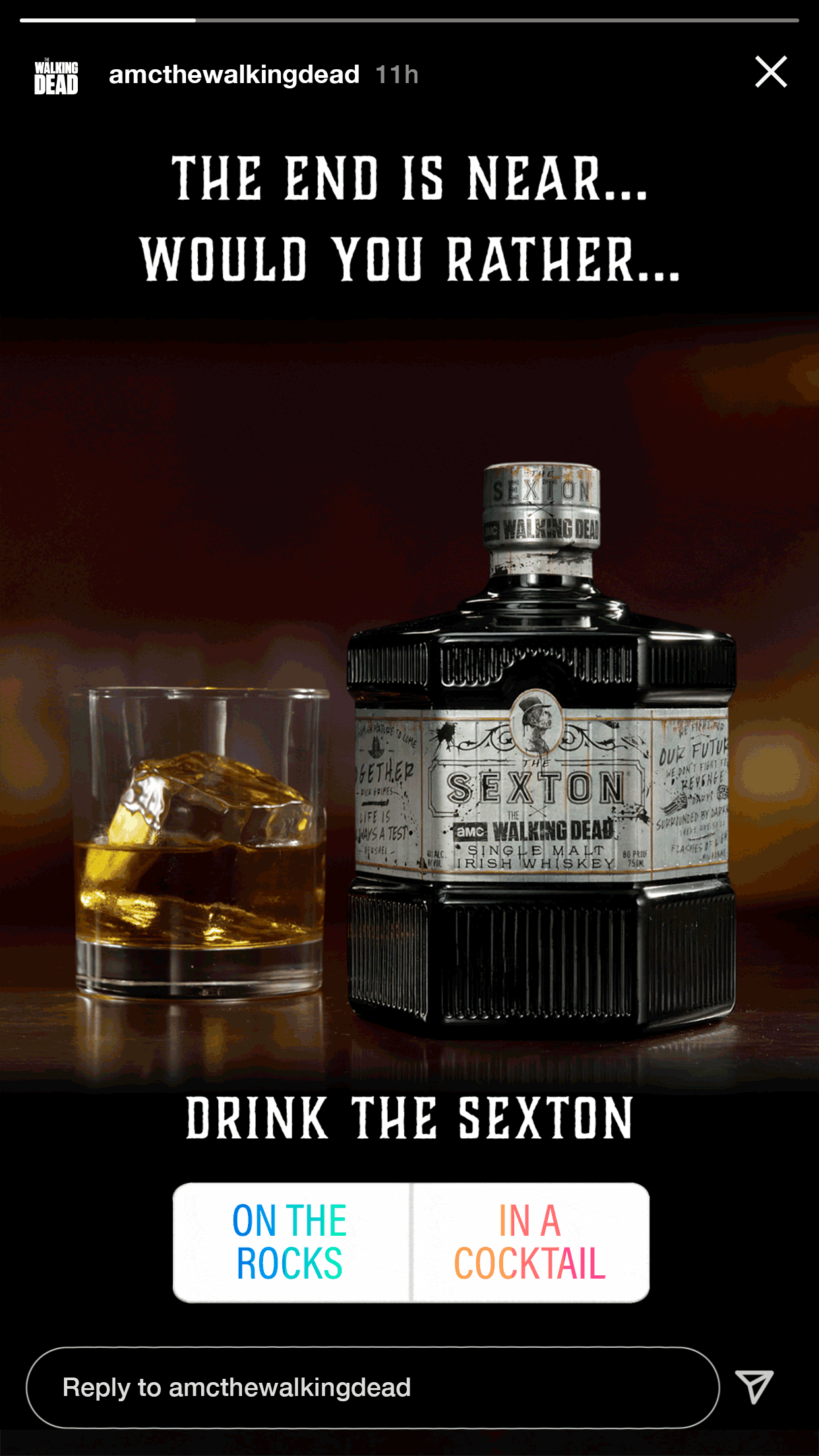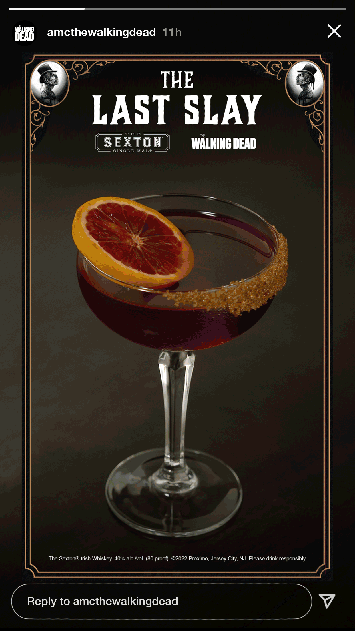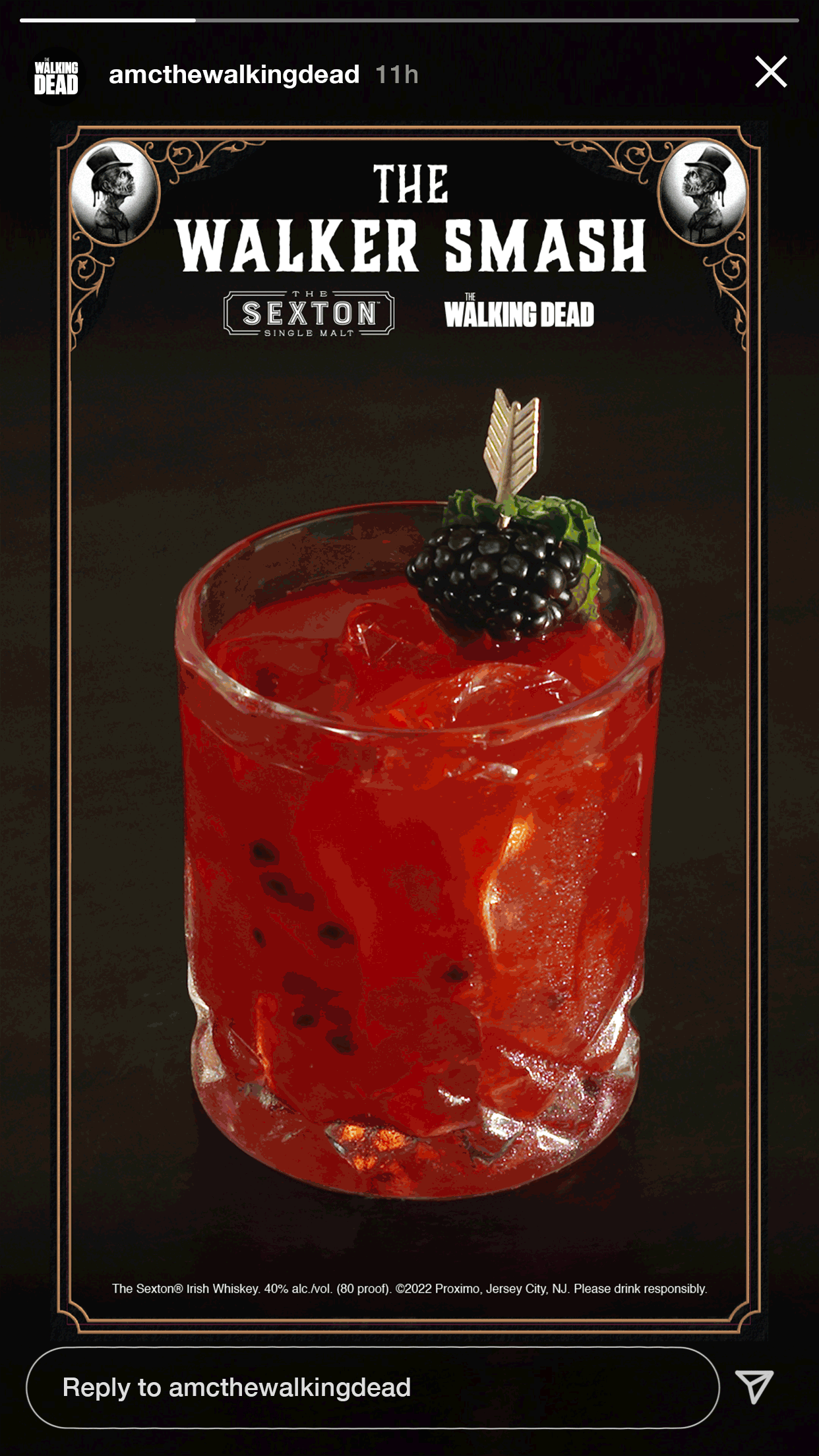 Social campaign that celebrates the collaboration between AMC Walking Dead and Sexton Whiskey